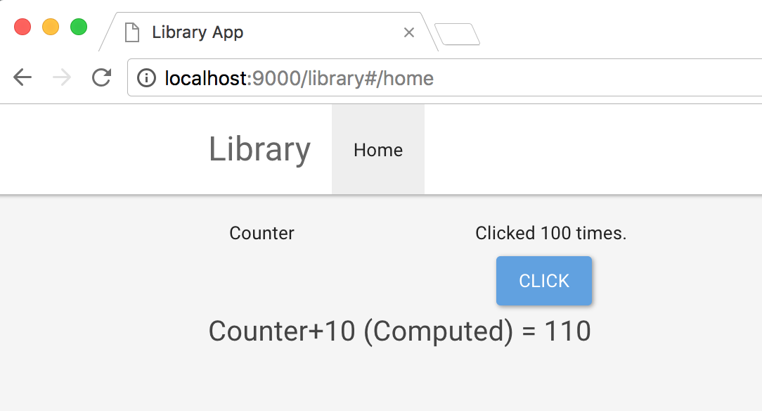 Compile and run and http://localhost:9000/library. Should be able to see Counter